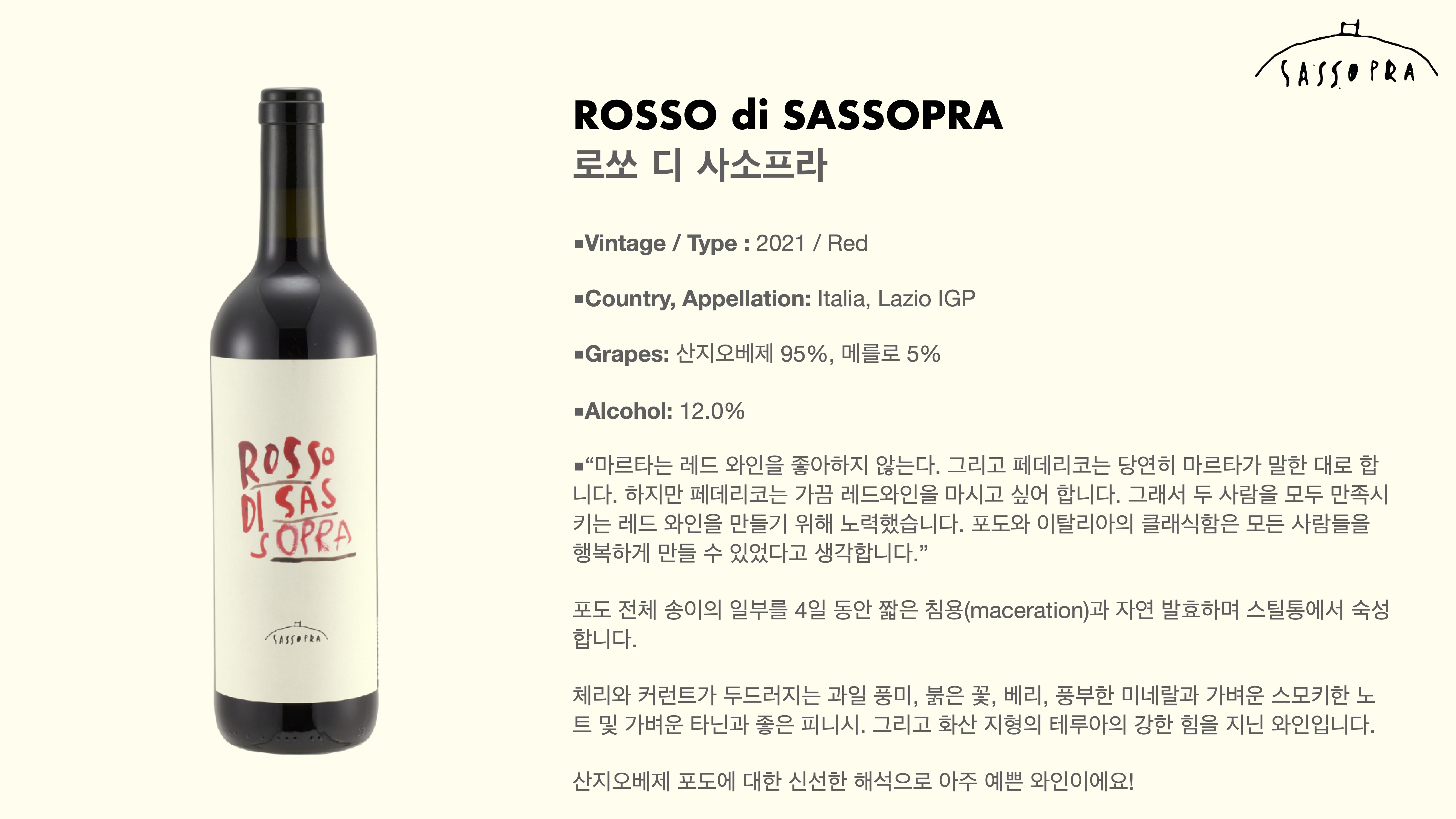 산지오베제 포도에 대한 신선한 해석으로 아주 예쁜 와인이에요!