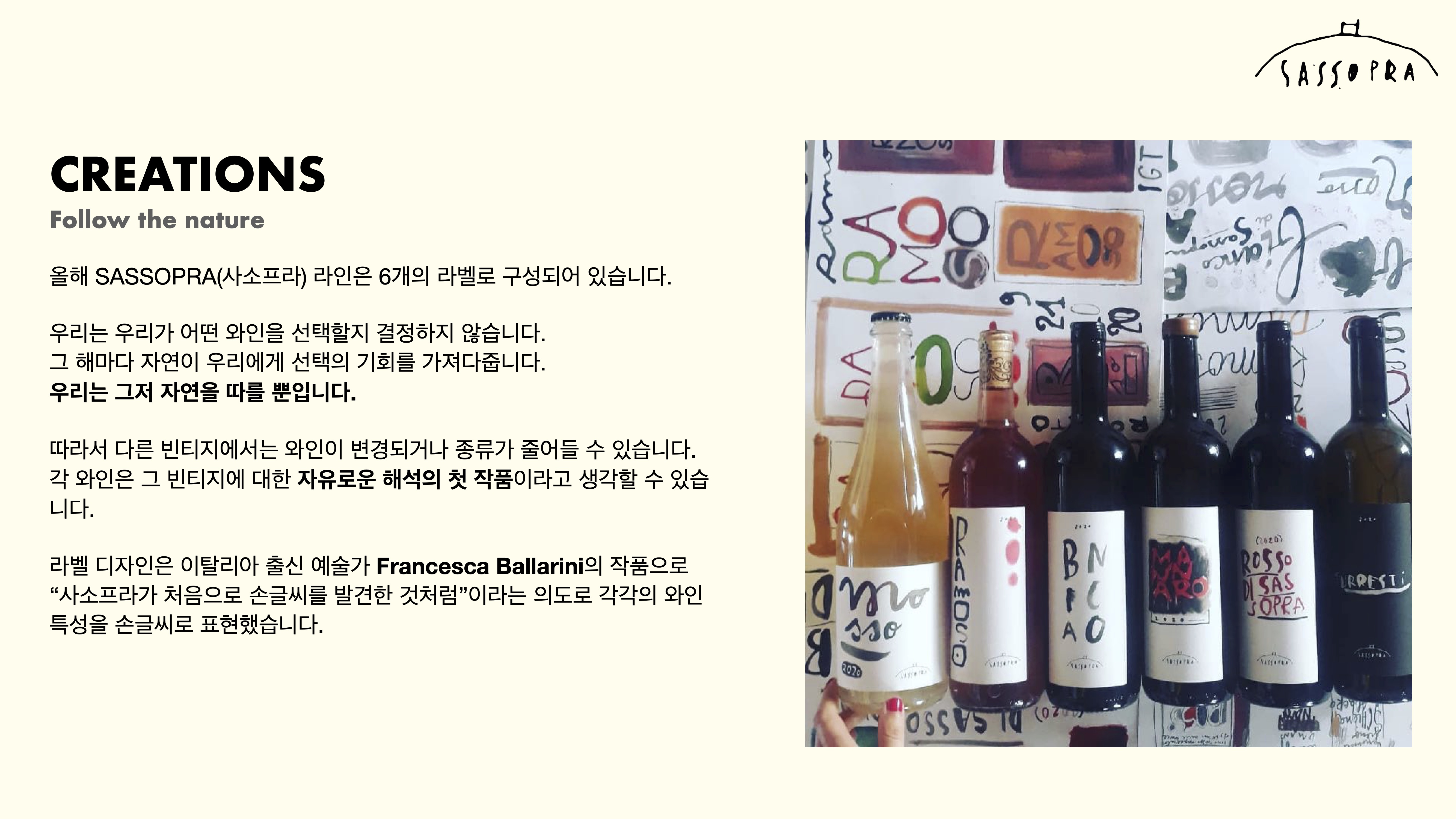 이름처럼 격렬하고 압도적인 와인으로 130일 동안 침용 과정을 거치는 결과는 놀라울 정도 의 가벼움과 섬세한 아로마와 미세한 탄닌으로 강한 임팩트를 주는 와인입니다.