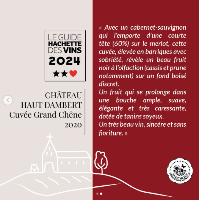 2012년 Le Système de Management des Vins de Bordeaux (SME) 의 회원이 돼 ISO 14001 인증을 받았으며, 2017년에는 친환경인증인 High Environmental Value(HVE) 라벨을 유지하고 있습니다. 2019년 유기농 농법을 결합해 2023년 초에 첫 유기농 인증 빈티지가 출시됐습니다.
