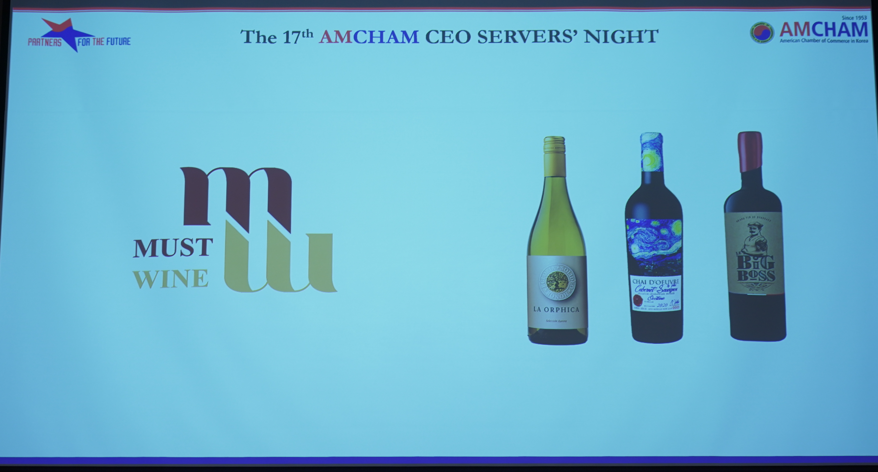 총 35개의 국내외 기업 CEO를 포함한 470여 명이 참석한 'CEO Servers’ Night 2024'의 저녁 만찬 와인(김앤장, 모건스탠리, 크립토닷컴, 인스파인어, 라이나손보, 파파존스, 퍼솔 CEO 등 참석)