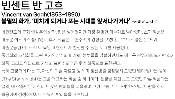 빈센트 반 고흐(Vincent van Gogh)의 유명한 작품, 별이 빛나는 밤 (The Starry Night)을 사용