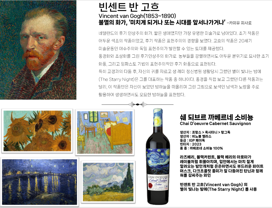 또 한 디자인에 재능이 있던 그는, 각 와인에 어울리는 레이블을 직접 디자인하여 선보이고 있습니다.