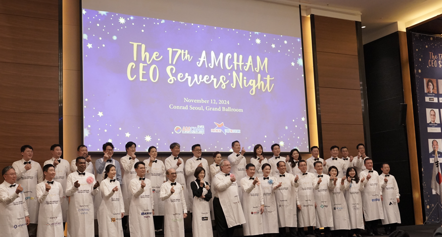 **'CEO Servers’ Night'은 한국 및 다국적 기업의 CEO들이 비즈니스 정장 대신 앞치마를 입고 그들의 직원, 가족, 친구 등에게 일일 웨이터로 봉사하는 독특한 자선 행사