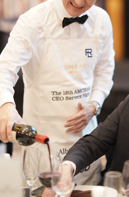 *'CEO Servers’ Night'은 한국 및 다국적 기업의 CEO들이 비즈니스 정장 대신 앞치마를 입고 그들의 직원, 가족, 친구 등에게 일일 웨이터로 봉사하는 독특한 자선 행사