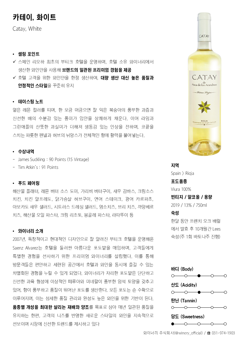 2007년, 독창적이고 현대적인 디자인으로 잘 알려진 부티크 호텔을 운영해온 Saenz Alvarez는 호텔을 둘러싼 아름다운 포도밭을 매입하며, 고객들에게 특별한 경험을 선사하기 위한 프리미엄 와이너리를 설립했다. 이를 통해 방문객들은 편안하고 세련된 공간에서 호텔과 와인을 동시에 즐길 수 있는 차별화된 경험을 누릴 수 있게 되었다. 와이너리가 자리한 포도밭은 단단하고 신선한 과육 형성에 이상적인 떼루아와 미네랄이 풍부한 암석 토양을 갖추고 있어, 향이 풍부하고 품질이 뛰어난 포도를 생산한다. 모든 포도는 손 수확으로 이루어지며, 이는 섬세한 품질 관리와 완성도 높은 와인을 위한 기반이 된다. 품종별 개성을 최대한 살리는 재배와 양조를 목표로 삼아 매년 일관된 품질을 유지하는 한편, 고객의 니즈를 반영한 새로운 스타일의 와인을 지속적으로 선보이며 시장에 신선한 트렌드를 제시하고 있다.