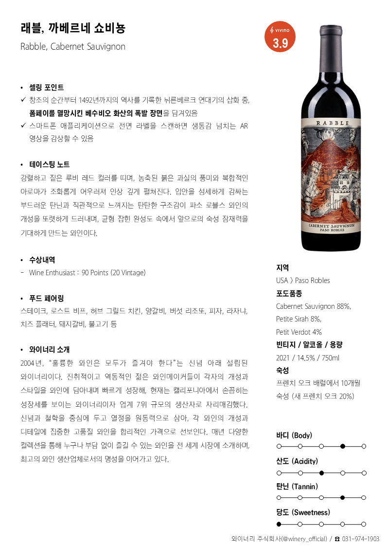 강렬하고 짙은 루비 레드 컬러를 띠며, 농축된 붉은 과실의 풍미와 복합적인 아로마가 조화롭게 어우러져 인상 깊게 펼쳐진다. 입안을 섬세하게 감싸는 부드러운 탄닌과 직관적으로 느껴지는 탄탄한 구조감이 파소 로블스 와인의 개성을 또렷하게 드러내며, 균형 잡힌 완성도 속에서 앞으로의 숙성 잠재력을 기대하게 만드는 와인이다.