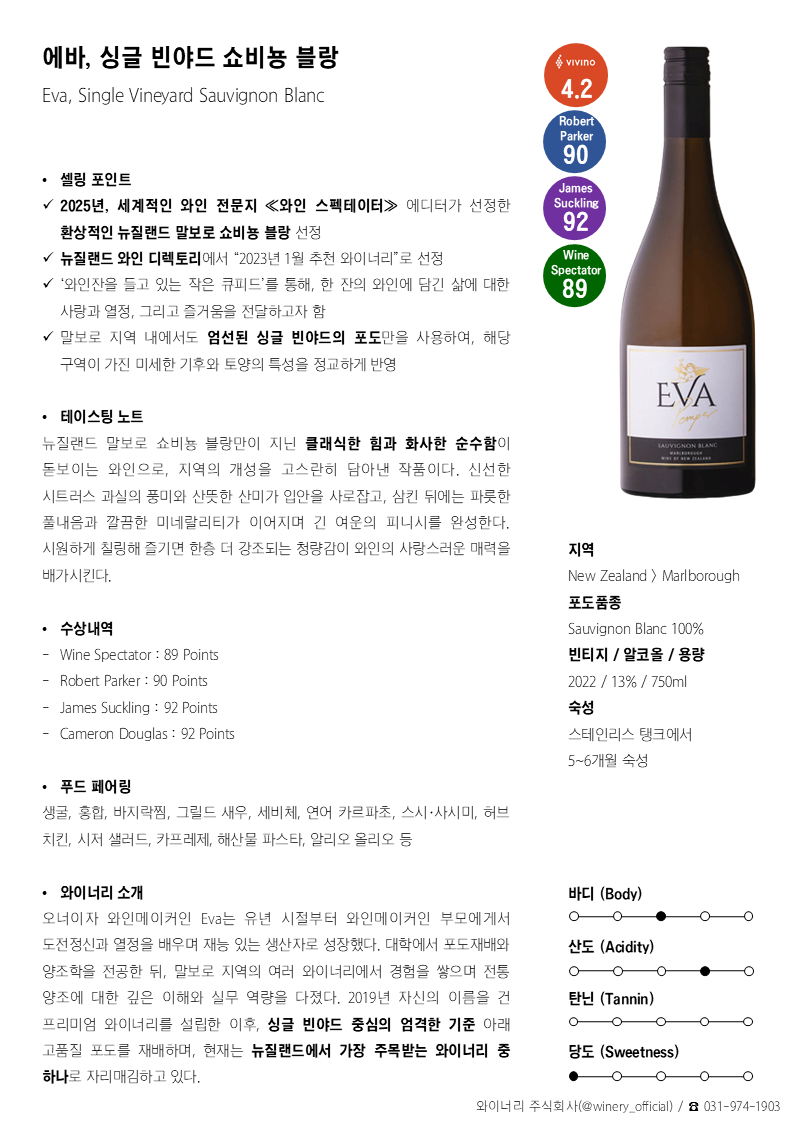 에바, 싱글 빈야드 쇼비뇽 블랑 2022