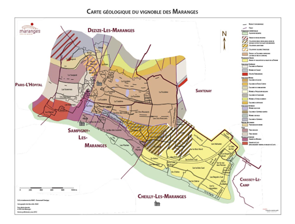 Maranges는 꼬뜨 드 본 Cote de Beaune에서 가장 남쪽에 자리잡고 있는 와인생산 지역입니다. 꼬뜨 샬로네즈 Cote Chalonnaise의 부즈룡 Bouzeron, 튀이 Rully와 이어집니다. 2018년 기준 200헥타르가 채 안되는 작은 경작 면적을 가지 고 있습니다. 재배하는 품종은 거의 Pinot Noir이고 Chardc?nnay는 10%가 채 되지 않습니다. 1er Cru가 전체 면적의 43% 가량입 니다.이 지역은 1988년 이전까지는 Cote de Beaune Villages 생산지역이었고 19期년부터 Maranges라는 이름을 얻게 됩니 다. 이 과정에서 Chevrot 가문의 역할이 적지 않았습니다.이 Maranges마을에 자리잡고 있는 Domaine Chevrot는 1798년까지 거슬러 올라가는 유서깊은 건물에서 1830년부터 지금까지 대를 이어 와인을 만들어오고 있습니다. 현재는 양조학을 전공한 Pablo와 Vincent Chevrot형제가 관리하고 있 으며 종 15개 아벨라씨옹을 생산합니다만,18렉타르의 포도밭 대부분은 Maranges, Santenay에 집증되어 있습니다. Pablo Chevrot는 Maranges AOC 회장을 역임하였고 품질좋은 Aligote 와인을 생산하기 위해 모인 'Les Aligoteurs'의 창 립 멤버이자 부회장이기도 합니다. Domaine Chevrot는 이 지역 다른 생산자들의 포트폴리오와는 사뭇 다르게 화이트 의 비율이 높습니다. Pinot Noir 50%, Chardonnay 40%, Aligote 10%로 레드와 화이트가 반반입니다.