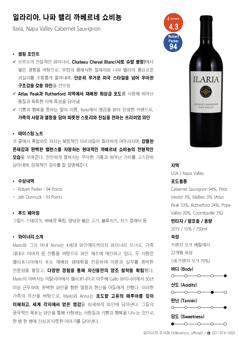 일라리아, 나파밸리 까베르네 쇼비뇽 2019