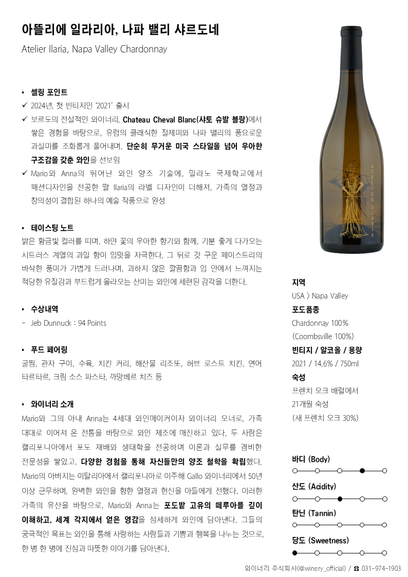 아뜰리에 일라리아, 나파밸리 샤르도네 2021