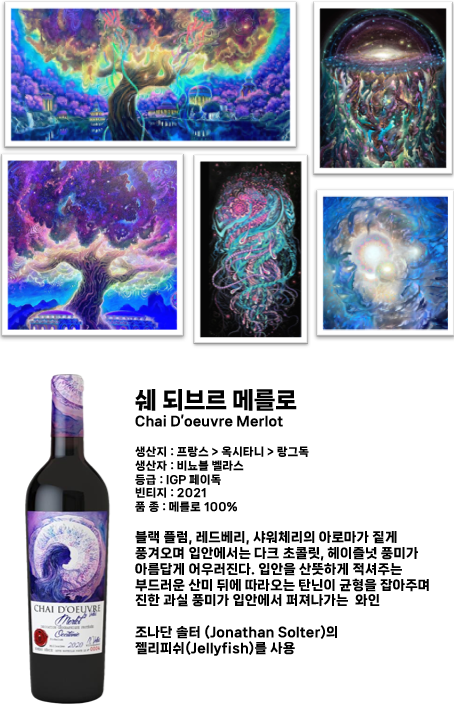 와인이 가진 특성과 캐릭터에 어울리는 각 레이블들은 마시는 이들의 눈까지 즐겁게 해주기로 유명합니다.