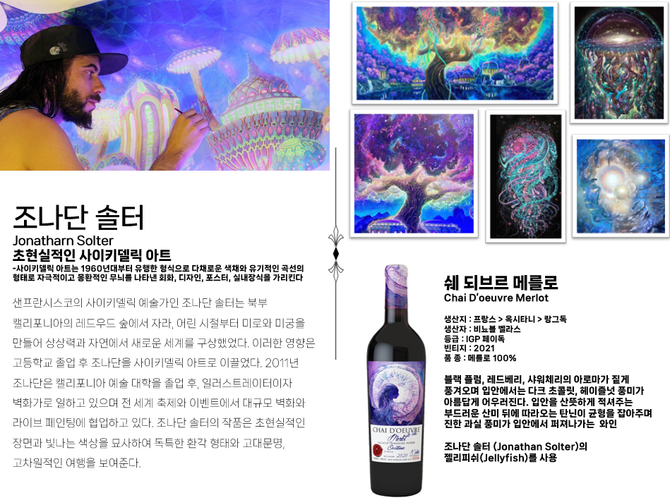 또 한 디자인에 재능이 있던 그는, 각 와인에 어울리는 레이블을 직접 디자인하여 선보이고 있습니다.