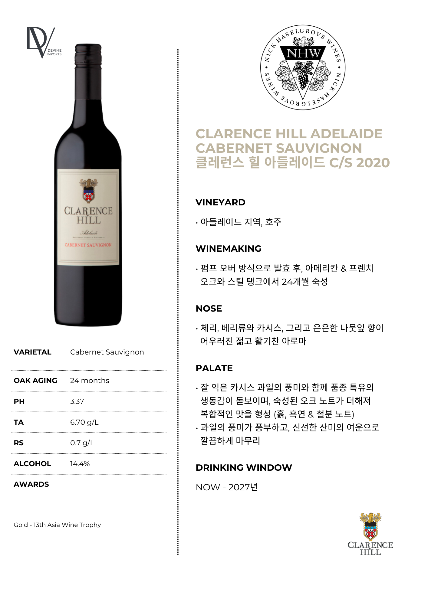 클레런스 힐 아들레이드 카베르네 소비뇽 2020