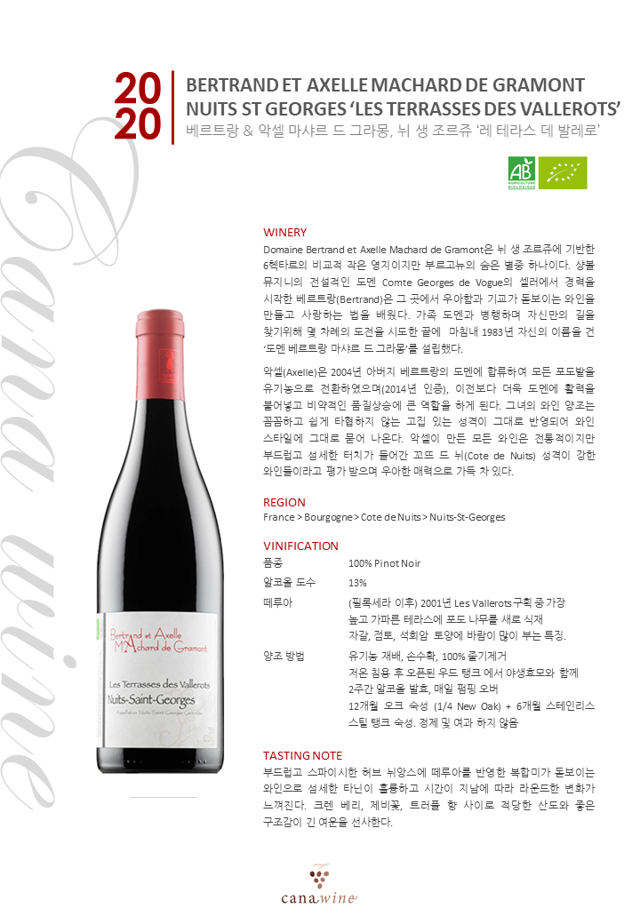Bertrand et Axelle Machard de Gramont, Nuits St Georges Les Terrasses des Vallerots