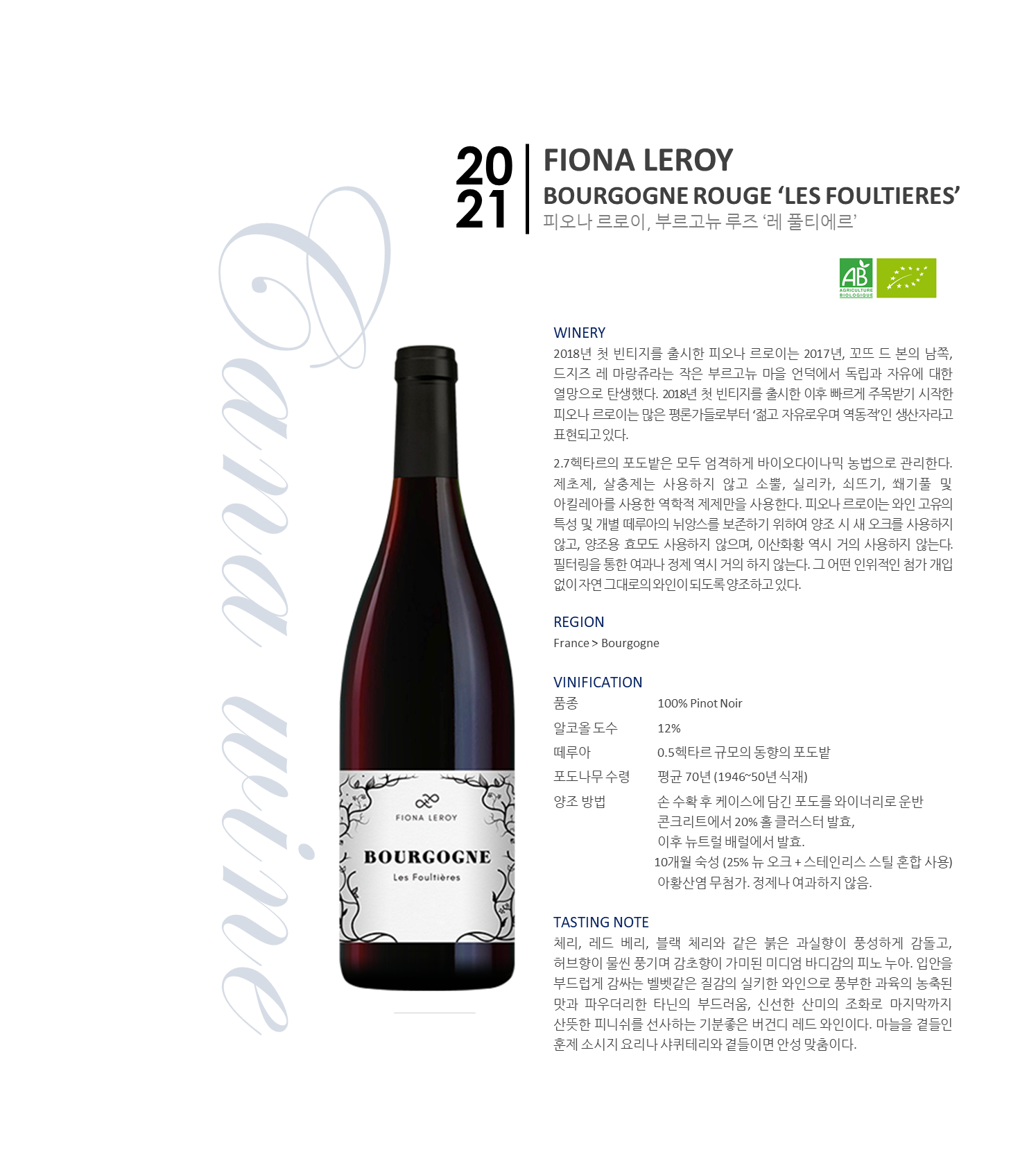 피오나 르로이, 부르고뉴 루즈 `레 풀티에르` 2021