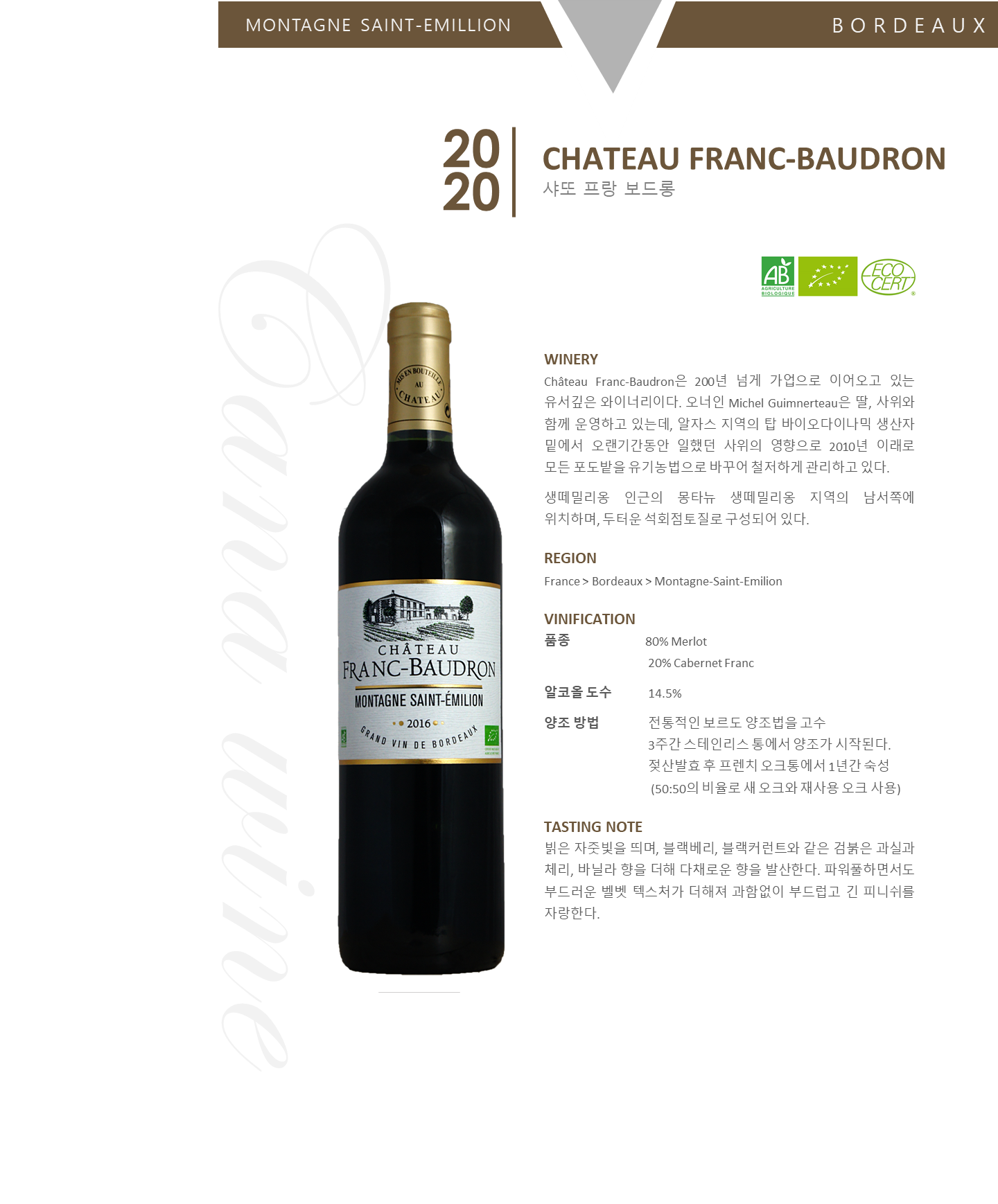 샤또 프랑 보드롱, 몽타뉴 생테밀리옹 2020