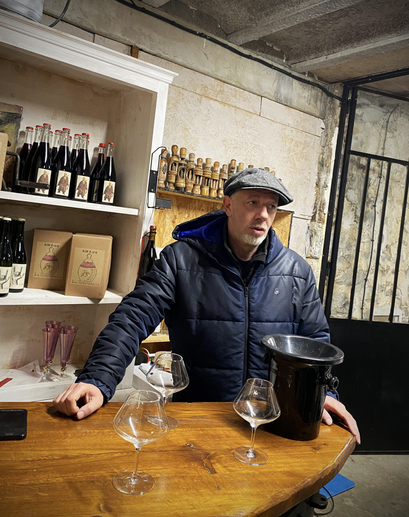 이곳에서 많은 내추럴와인 생산자들과 친교를 맺으며 내추럴 와인 구조에 대한 사고방식을 확립하였습니다. 특히 이 당시에 잭 네오폴과 필립 파카레와 함께 내추럴 와인에 대한 공부한 것이 영향이 크다고 합니다.