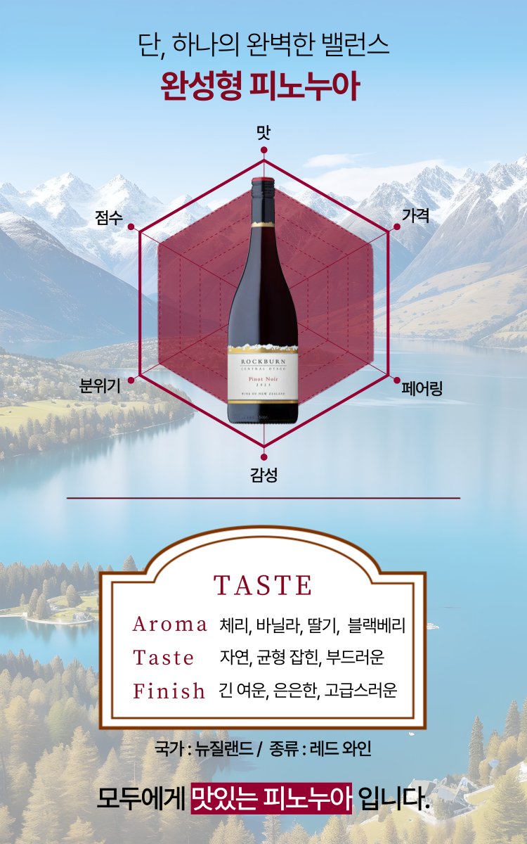 이들은 세계 최남단 포도 재배지인 센트럴 오타고에서, 품종의 개성이 살아있는 고품질 와인을 생산합니다. 남위 45도에 위치한 이곳은 세계적인 피노누아 산지인 프랑스 부르고뉴와 비슷한 기후 조건을 갖추고 있습니다.
