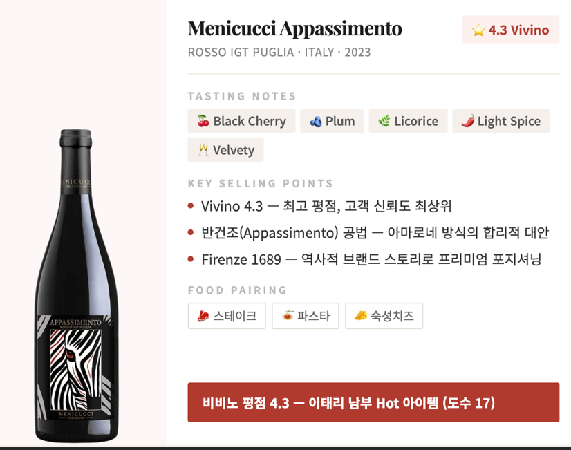 잘익은 붉은과일의 맛과, 산미와 부드러움이 조화롭게 어우러져 좋은 밸런스를보여줍니다