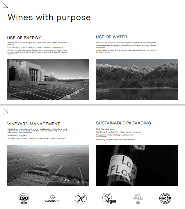 진한 바이올렛의 색상에 신선한 붉은 과일과 밝은 꽃 노트로 가득 찬 향기가 있으며오크숙성 에서 오는 바닐라 와 토바코 향이 섬세한 힌트를 주며 둥글고 놀라운 구조로 부드러운 탄닌이 특징