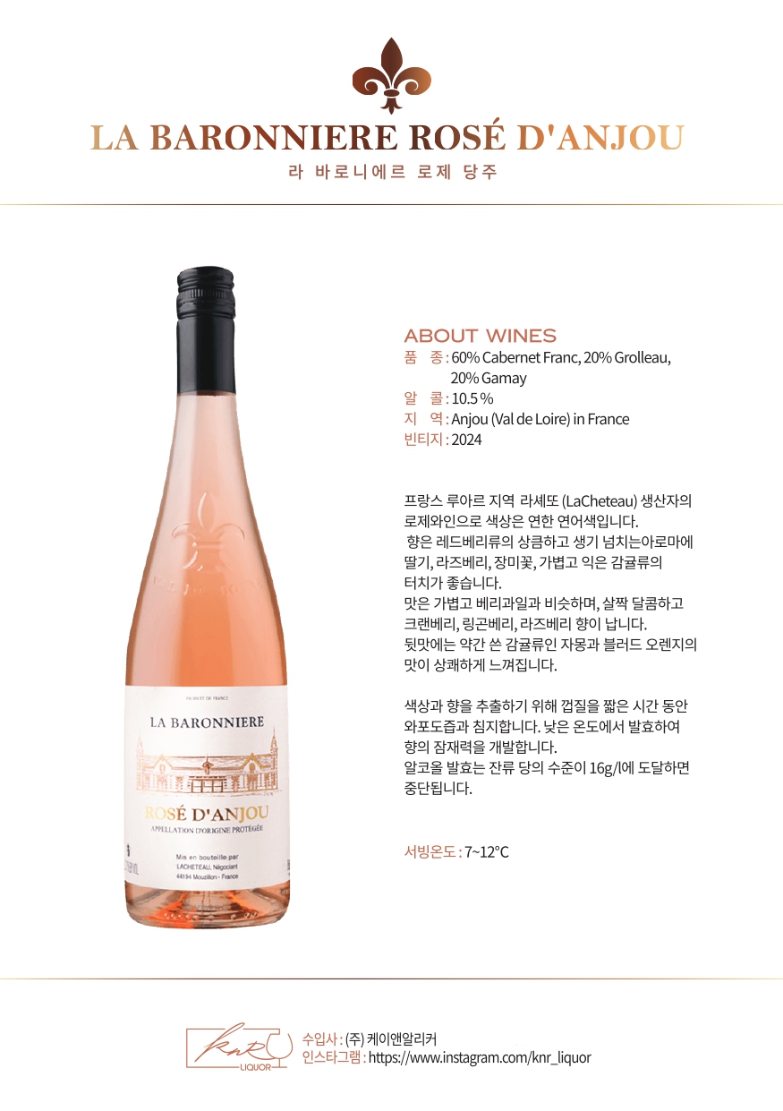 2. AOC 등급 획득: 프랑스의 엄격한 품질 관리 체계인 Rosé d'Anjou AOC 인증을 받은 와인