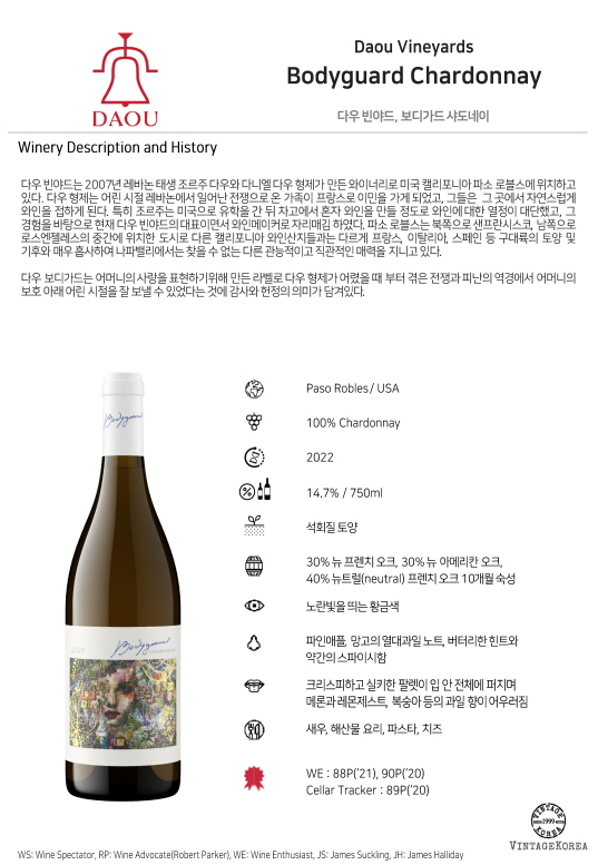 다우 보디가드는 어머니의 사랑을 표현하기위해 만든 라벨로 다우 형제가 어렸을 때 부터 겪은 전쟁과 피난의 역경에서 어머니의 보호 아래 어린 시절을 잘 보낼 수 있었다는 것에 감사와 헌정의 의미가 담겨있다.