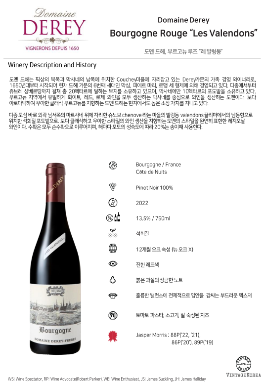 도멘 드헤, 부르고뉴 루즈 레 발렁동 2022