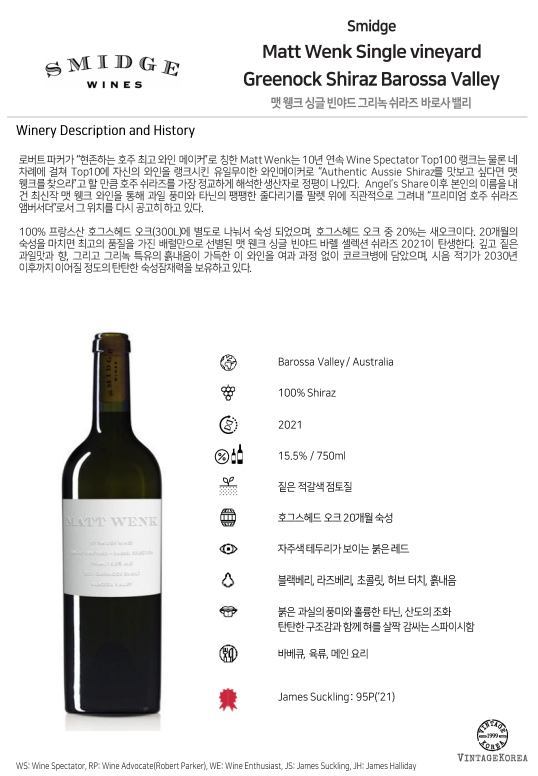 맷 웽크 바로사 밸리 싱글 빈야드 그리녹 쉬라즈 2021