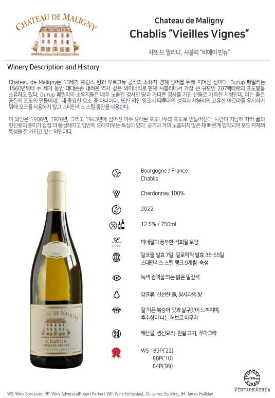 샤또 드 말리니, 샤블리 "비에이 빈뉴" 2022
