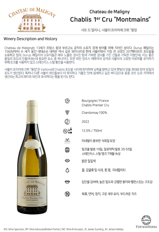 샤또 드 말리니, 샤블리 프리미에 크뤼 "몽망" 2022