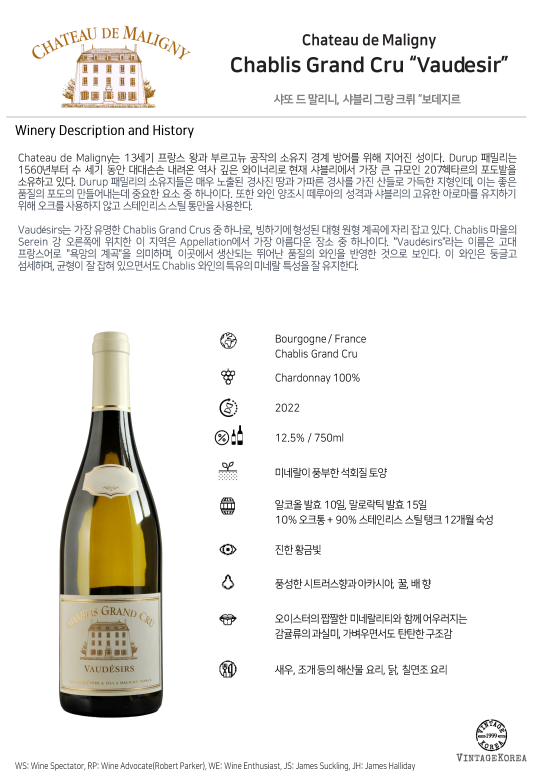 Chateau de Maligny, Chablis Grand Cru "Vaudesir"