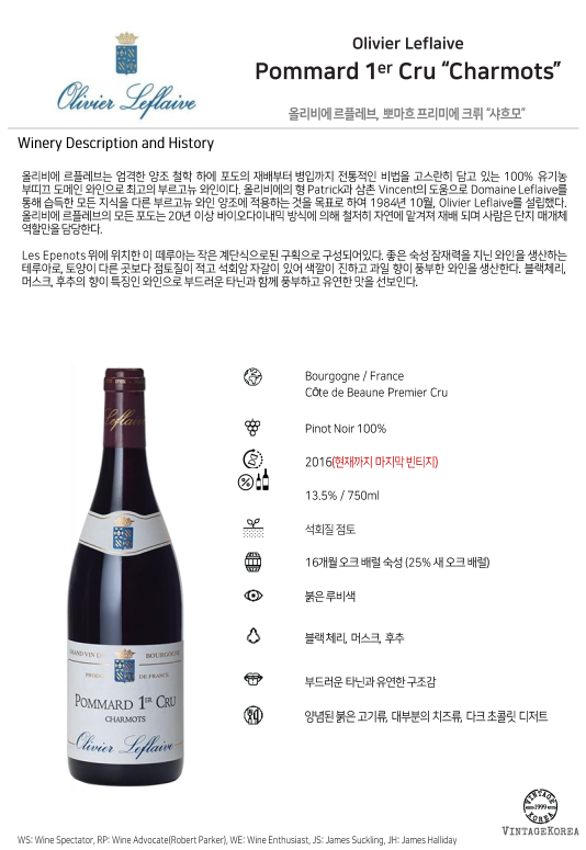 Olivier Leflaive, Pommard 1er Cru "Charmots"