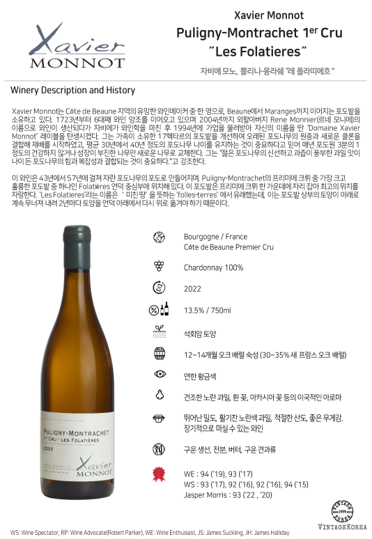 Xavier Monnot, Puligny Montrachet 1er Cru "Les Folatieres"