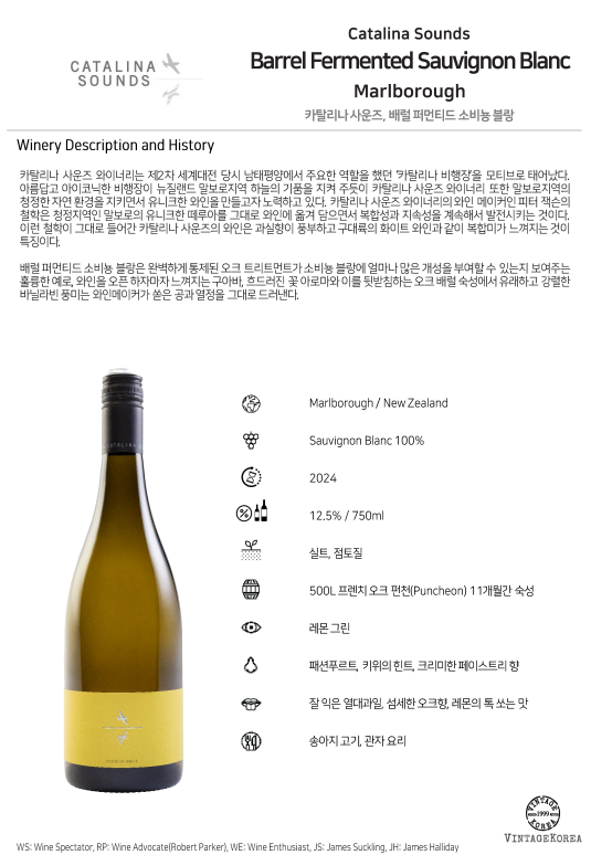 카탈리나 사운즈, 싱글빈야드 배럴 퍼먼티드 소비뇽블랑 2024