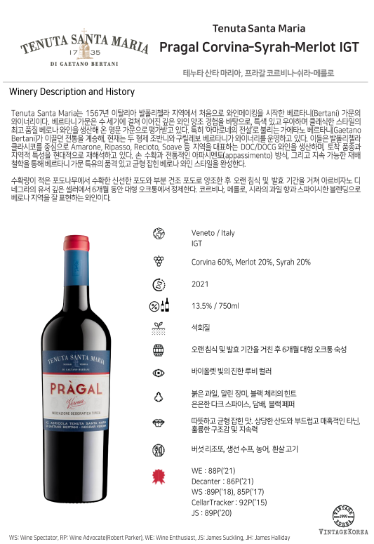 테누타 산타 마리아, 프라갈, 코르비나 쉬라 메를로 2021