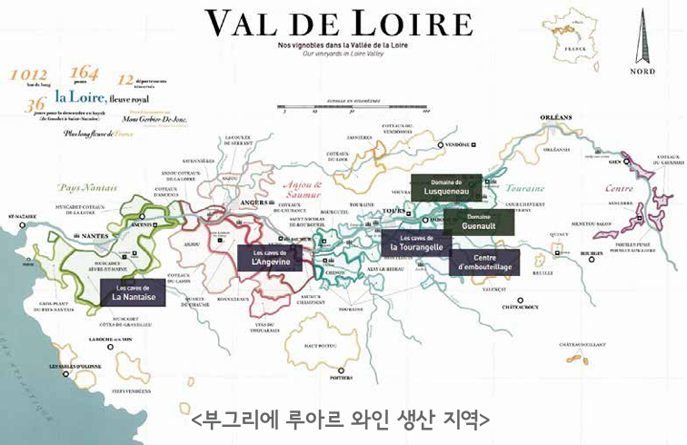 파미유 부그리에는 페이 낭떼에서 상트르 루아르 지역에 이르는 루아르 밸리 전체 포도밭을 소유하고 있는 마지막 가족 소유 와이너리 중 하나입니다. 1885년부터 6대에 걸쳐 포도밭을 소유하고 있으며(투렌에 100ha), 가장 유명한 루아르 밸리 포도밭에 3개의 와이너리를 운영하며 대규모 와인 메이커로도 활동하고 있습니다. 무스카데(Muscadet), 앙주-소뮈르(Anjou-Saumur), 투렌(Touraine) 포도 재베에서 병입에 이르기까지 모든 과정을 마스터하여 다양한 와인을 생산합니다. 2015년 니콜라스 부그리에는 아버지 노엘과 함께 가업에 합류했고, 5년 뒤에는 여동생 소피가 합류했습니다. 오늘날 두 세대에 걸쳐서 루아르 와인의 명성을 이어가고 있습니다.