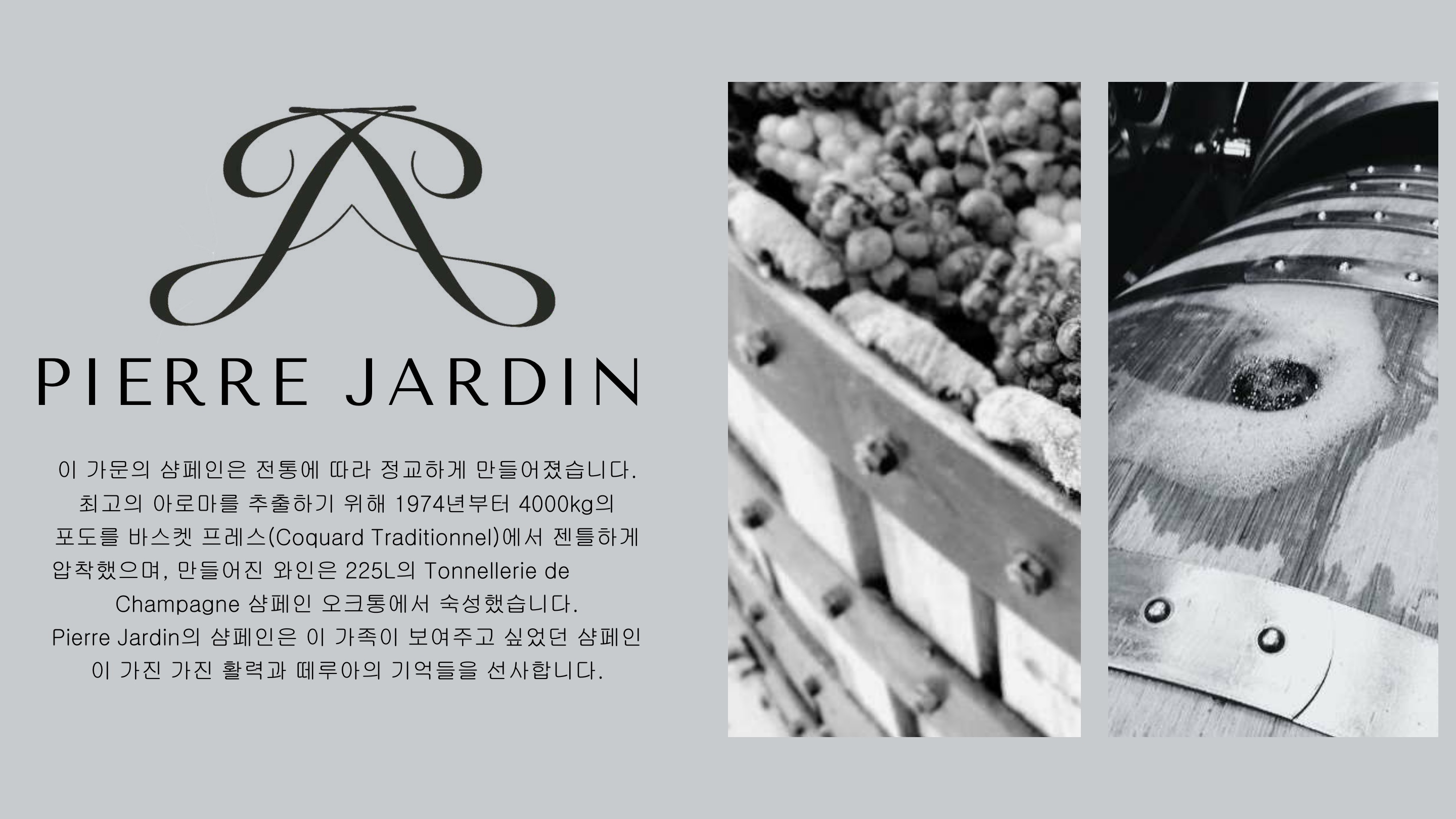 다채로운 과실 아로마에 뒤이어 피노 뮈니에 품종 100%가 보여주는 골격과 무게감이 입 안 전체에 안정적으로 내려앉는다. 빈티지 샴페인으로써 마시기 좋게 산화된 구수한 느낌과 긴 여운을 주는 산미가 매우 훌륭하다.