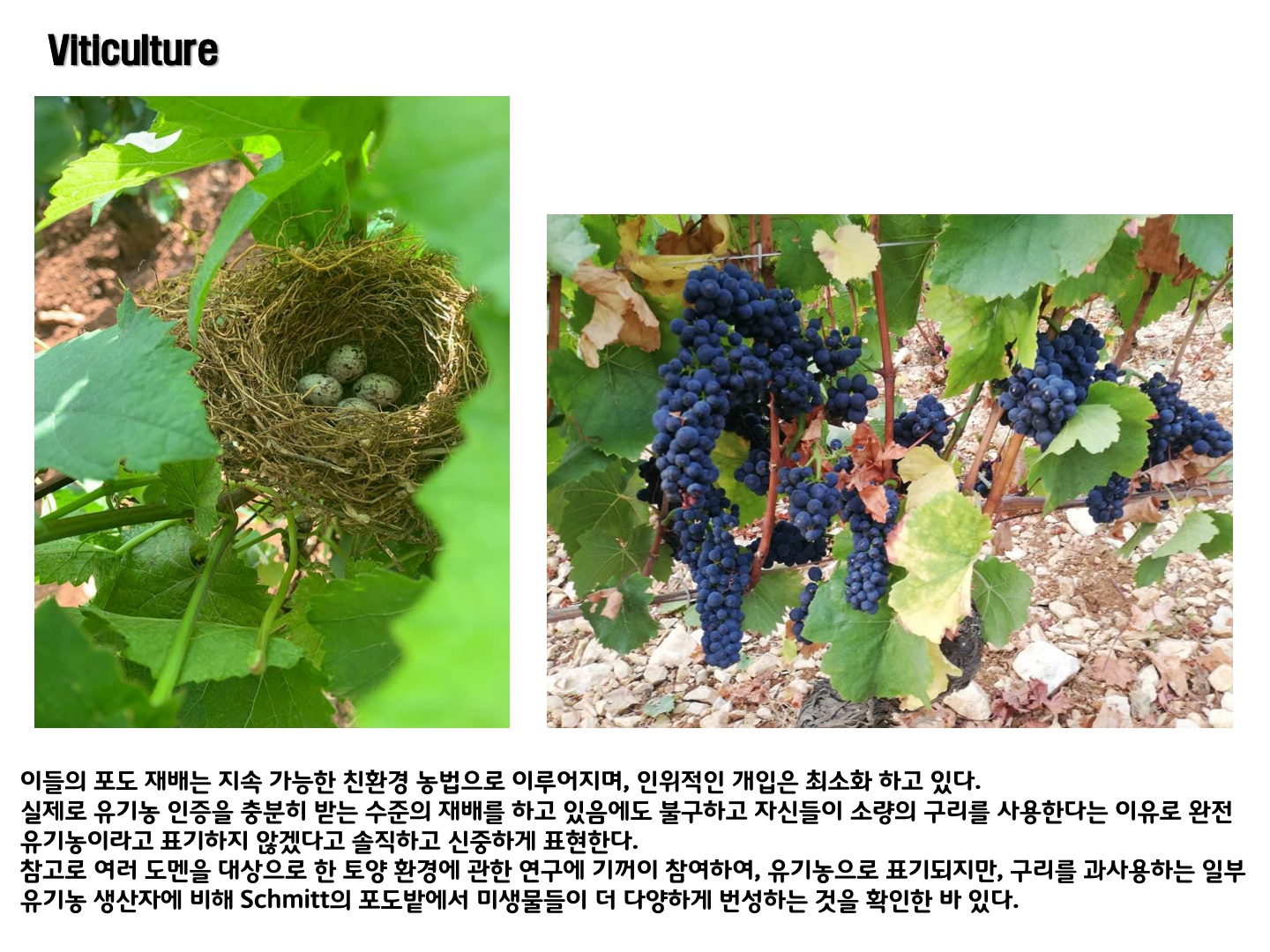 잘 익은 베리류의 새콤달콤한 아로마와 깊은 숲을 연상시키는 오크 에이징의 부케가 매우 조화롭다. 매끄러운 탄닌과 산미 또한 혀 위를 미끄러지듯 부드럽게 이어지며 기분 좋은 피니시를 준다.