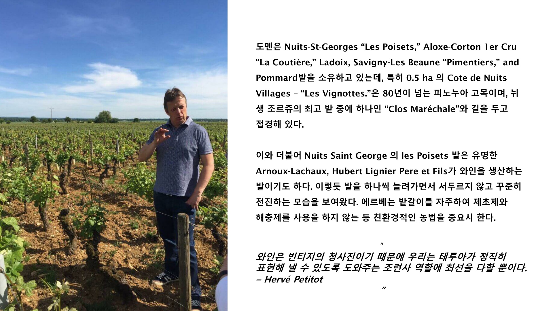 선명하고 향긋한 붉은 과실들의 아로마가 풍부하게 발현되며, 매끄러운 타닌이 미끄러지듯 입 안에 질감을 전한다. 마치 피노누아의 과즙이 순수하게 느껴지는 듯한 여운이 남는다.