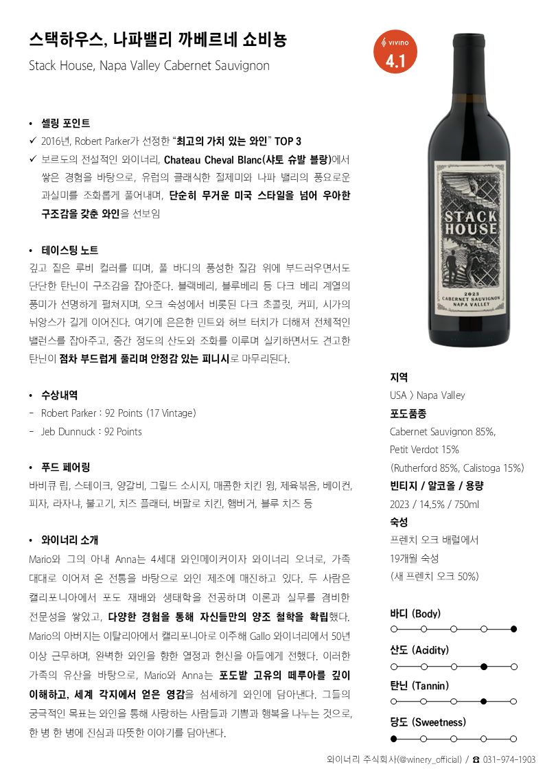 스택하우스, 나파밸리 까베르네 쇼비뇽 2023
