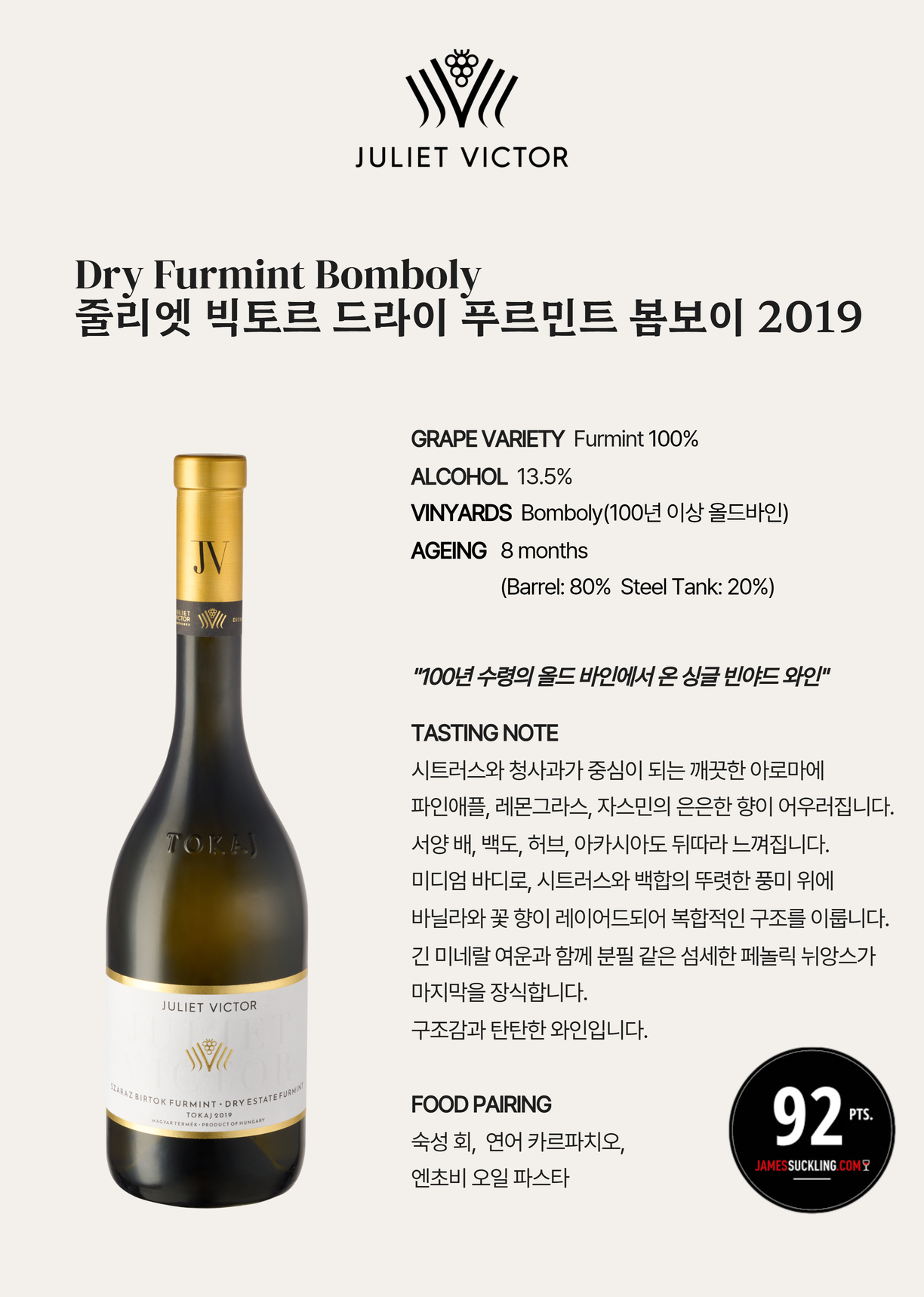 줄리엣 빅토르는 헝가리 토카이의 와이너리입니다.