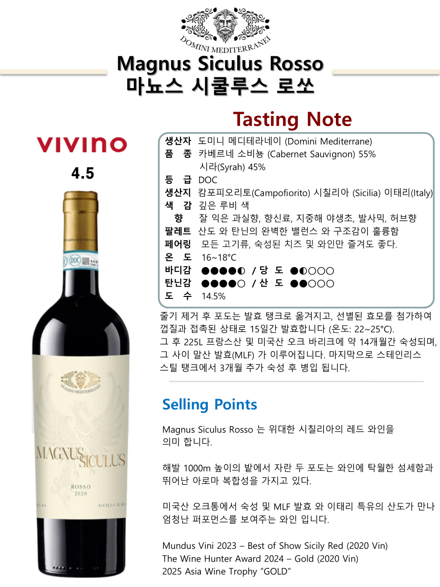 Mundus Vini 2023 – Best of Show Sicily Red (2020 Vin)