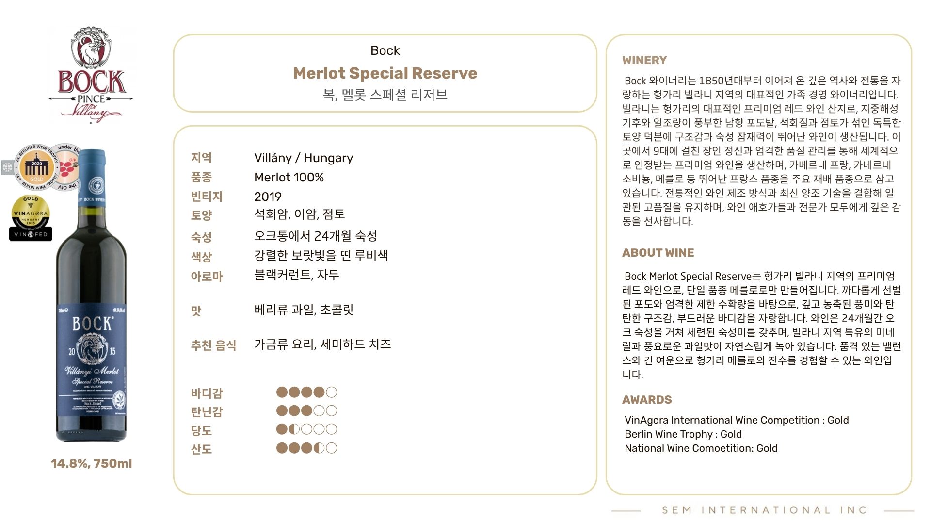 복, 멜롯 스페셜 리저브 2019