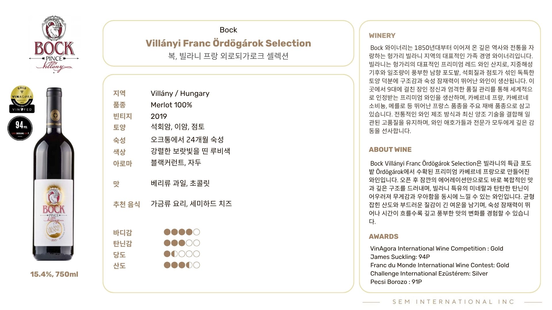 복, 빌라니 프랑 외로되가로크 셀렉션 2019