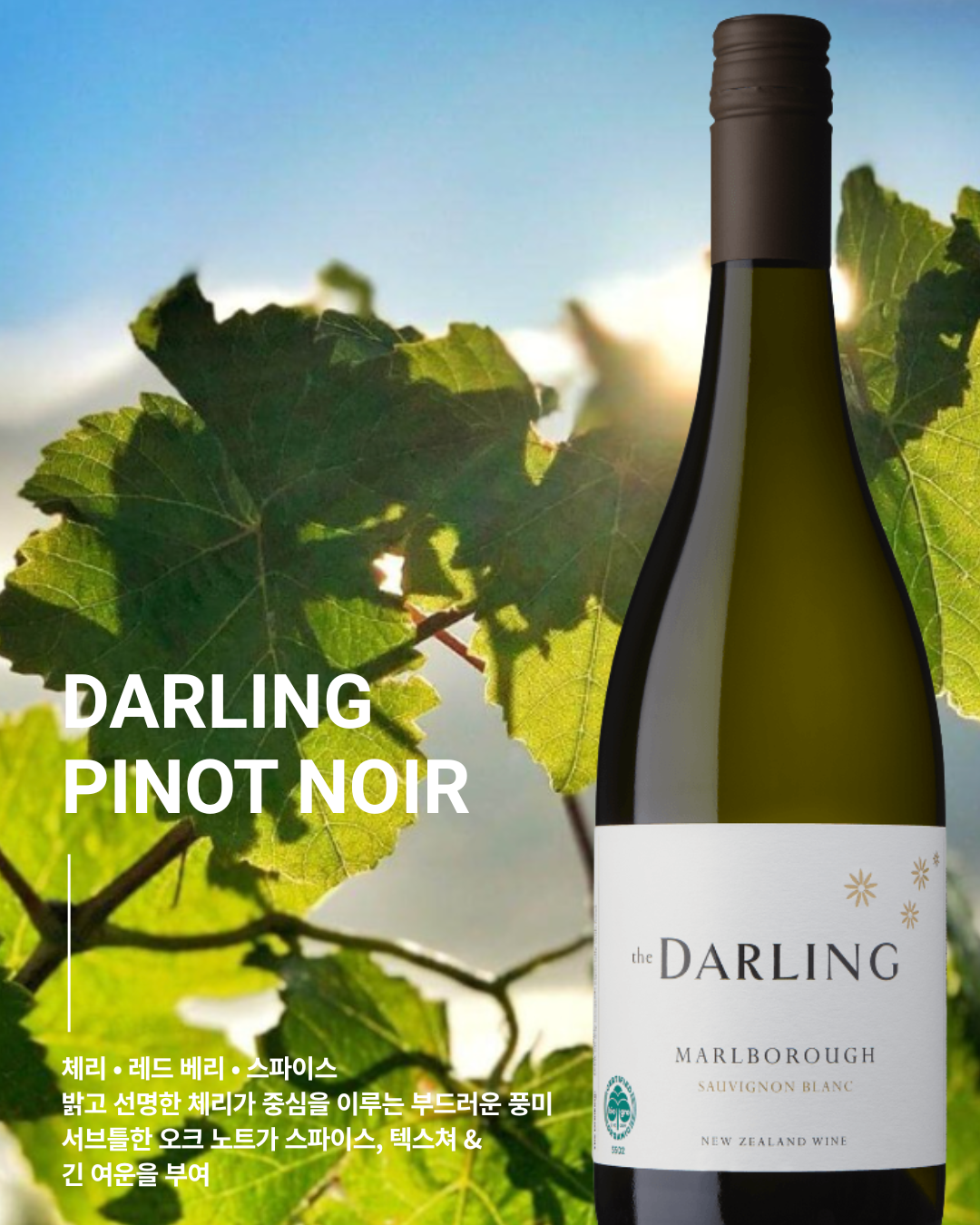 Darling Sauvignon Blanc은 말보로 소비뇽 블랑의 클래식한 스타일을 기반으로, 산지의 순수함과 높은 완성도를 강조한 와인입니다.