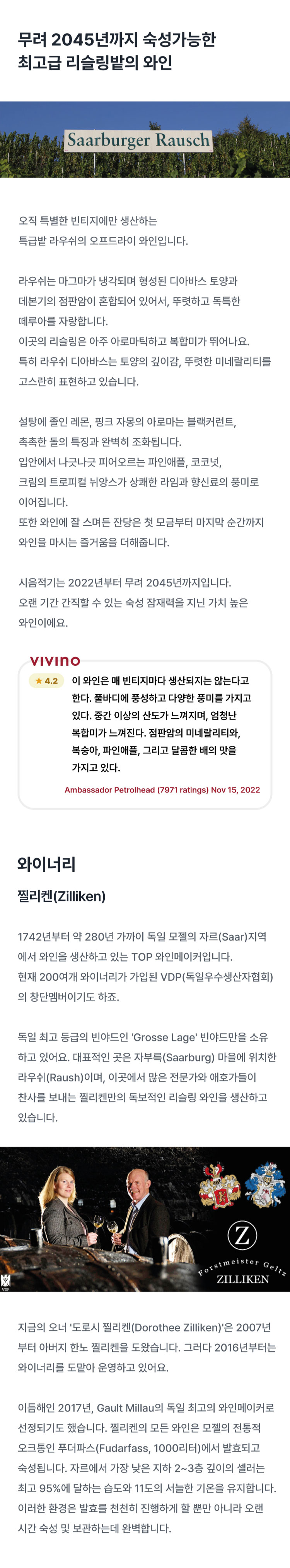 무려 2045년까지 숙성 가능한 어마무시한 잠재력을 지닌 최고급 리슬링 밭의 와인
