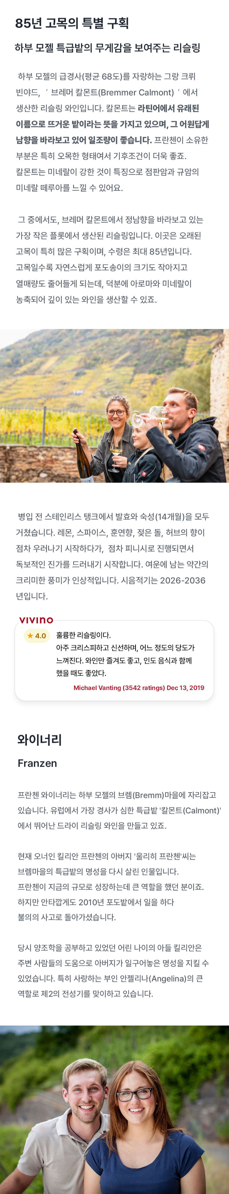 하부 모젤 특급밭의 무게감을 보여주는 리슬링 와인 입니다.