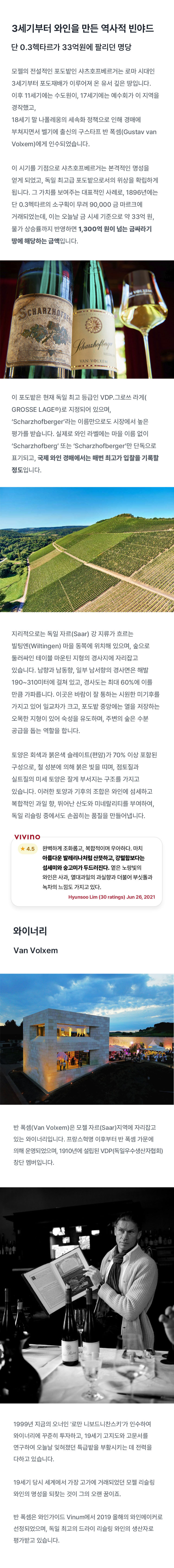 옅은 노랑빛의 와인은 사과, 열대과일의 과실향과 더불어 부싯돌과 녹차의 느낌도 가지고
