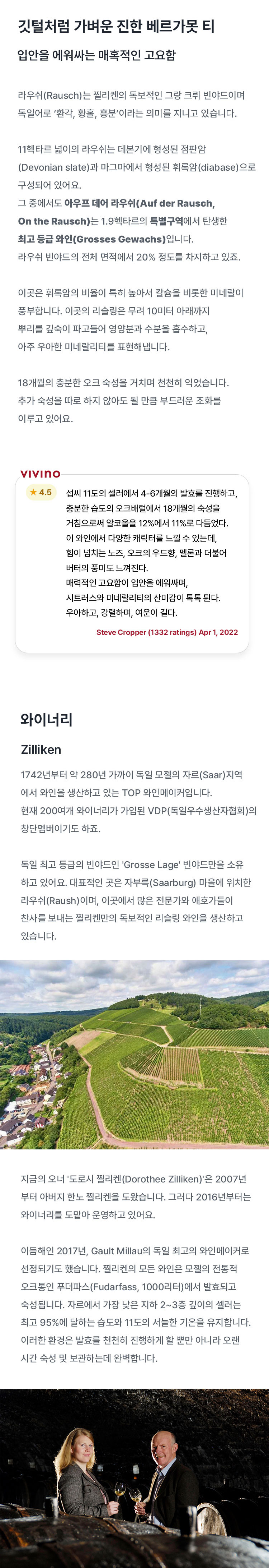 실크 같은 질감에 섬세한 훈연향, 매끈한 돌멩이의 미네랄리티가 느껴집니다.