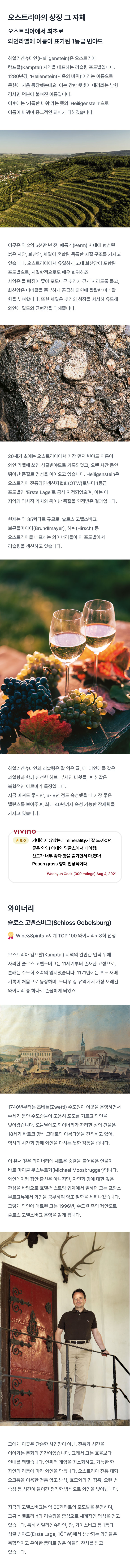 오스트리아 화이트를 논할 때 무조건 거론되는 탑 오브 탑 와인 입니다.